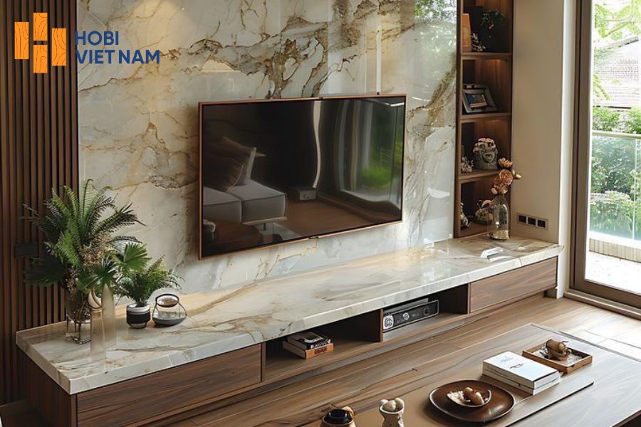 Gợi ý: Ốp sau kệ TV hoặc tường trụ phòng khách.